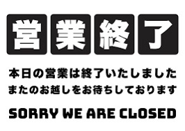 本日の営業は終了いたしました。
