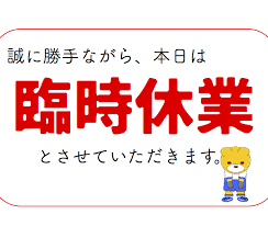 ⭐️本日、月曜日は「臨時休業」となります🙏🙇♂️🙇♂️